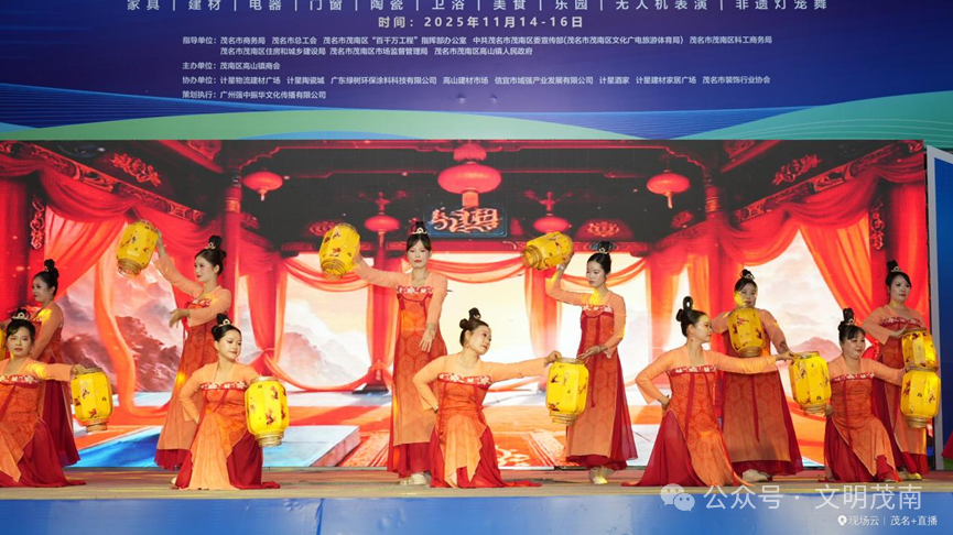 为深入学习宣传贯彻党的二十届四中全会精神,11月14日晚,“非遗焕新彩 文化惠万家”2025年茂名市茂南区灯笼舞展演在高山会展中心精彩亮相,17个镇街的表演队伍携手震撼人心的飞天凤凰与大型无人机天幕秀,以“非遗+科技+消费”的多元融合模式,紧扣“助力百千万,乐购新生活”核心宗旨,为茂南(高山)第三届家装·美食促消费嘉年华增色添彩,同时为市民献上一场兼具文化韵味与消费活力的夜间盛宴。